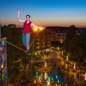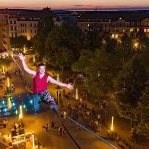 ”Die Zuschauer staunten nicht schlecht über den waghalsig anmutenden Drahtseilakt! Auf der mit Scheinwerfern illuminierten Slackline zeigten die Highperformer ihre ganze Kunst der Körperbeherrschung. Ein tolles Erlebnis für alle Anwesenden. Gerne wieder."
